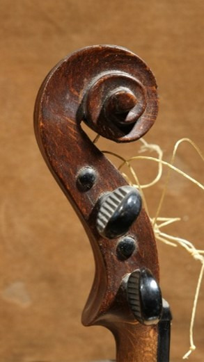This violin was given to us by…. It is not a ”real” violin. It wasn’t made by hand, but rather by using machines, and although it looks like a violin, it doesn’t produce any sound. This type of violin usually belonged to beggars who made believe they played, but actually sang the music.